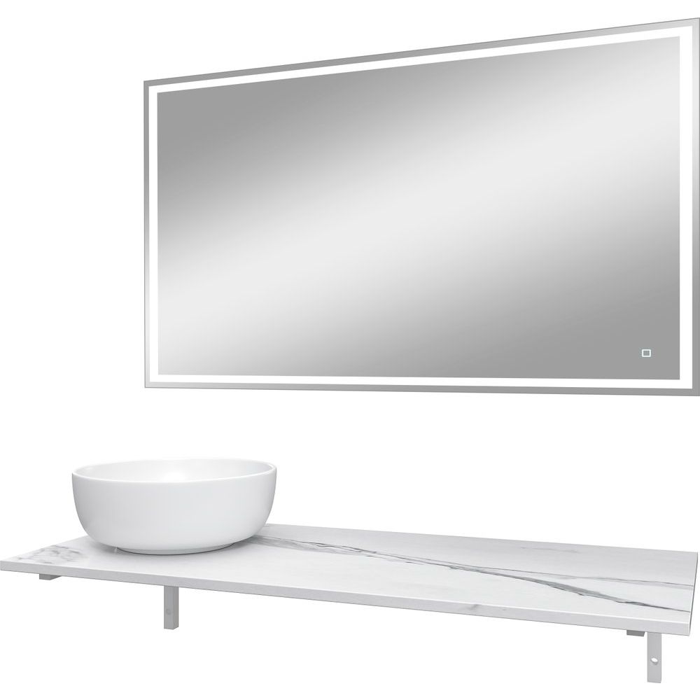 Мебель для ванной DIWO «Элиста 120» — это гармония стиля и функциональности, которая обогатит любой современный интерьер. Имитация белого мрамора на столешнице создает воздушный визуальный эффект, а размещенная на ней фарфоровая раковина Moduo 40 RING удивит лаконичным внешним видом и функциональностью. Уникальное левостороннее расположение раковины позволяет удобно организовать пространство для хранения необходимых аксессуаров. Последним штрихом на пути к совершенству станет зеркало DIWO «Дмитров 120» с регулируемой светодиодной подсветкой, добавляющее изысканности и практичности вашему интерьеру.