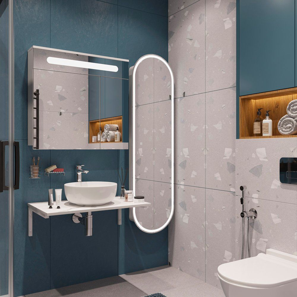 Мебель для ванной DIWO коллекции «Элиста 80» — это идеальное решение для создания стильного и функционального интерьера в вашей ванной комнате. Ее изысканный оттенок «белый мрамор» и минималистичный дизайн прекрасно дополнят современную обстановку. Комплект включает столешницу с двумя отверстиями для смесителя и накладной раковины, а также зеркало-шкаф со стеклянными полками и светодиодной подсветкой. Инновационный механизм доводчика обеспечивает плавное закрывание дверей, а раковина Moduo 40 RING из фарфора гарантирует легкость в уходе и долговечность.