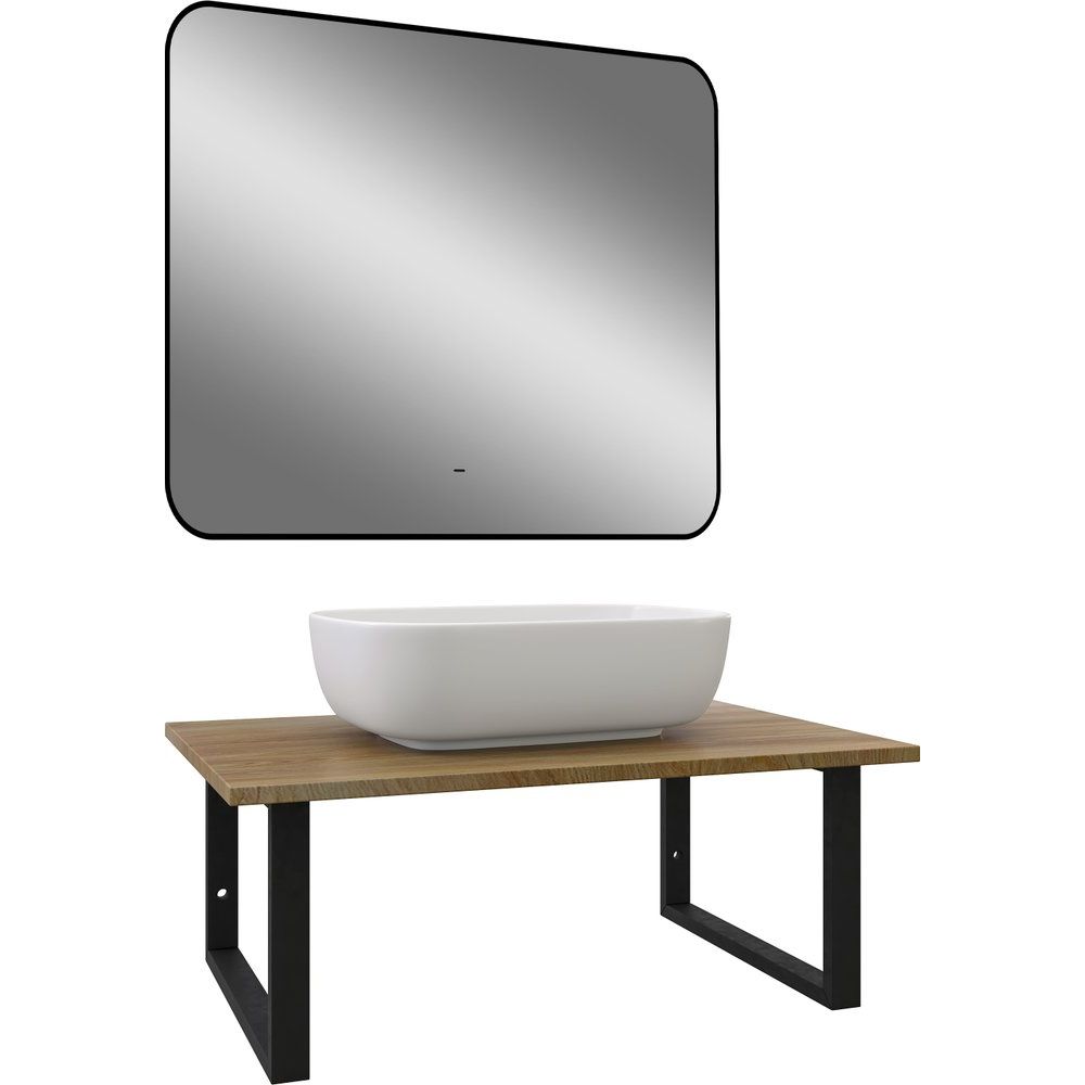 Мебель для ванной DIWO «Элиста 80» — это не только функциональное, но и стильное решение для вашего интерьера. Изысканный дизайн в светлом древесном оттенке позволяет визуально расширить пространство ванной комнаты, добавляя ей легкости и эстетики. Столешница выполнена из влагостойкой МДФ, а ее щедрые размеры обеспечивают удобство. Черные стальные держатели придают гарнитуру современный акцент, гармонирующий с остальными элементами коллекции, такими как зеркало с LED-подсветкой и элегантная фарфоровая раковина.