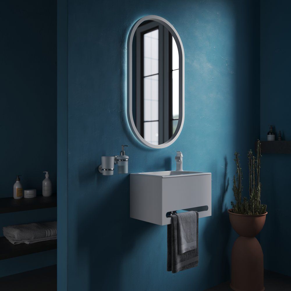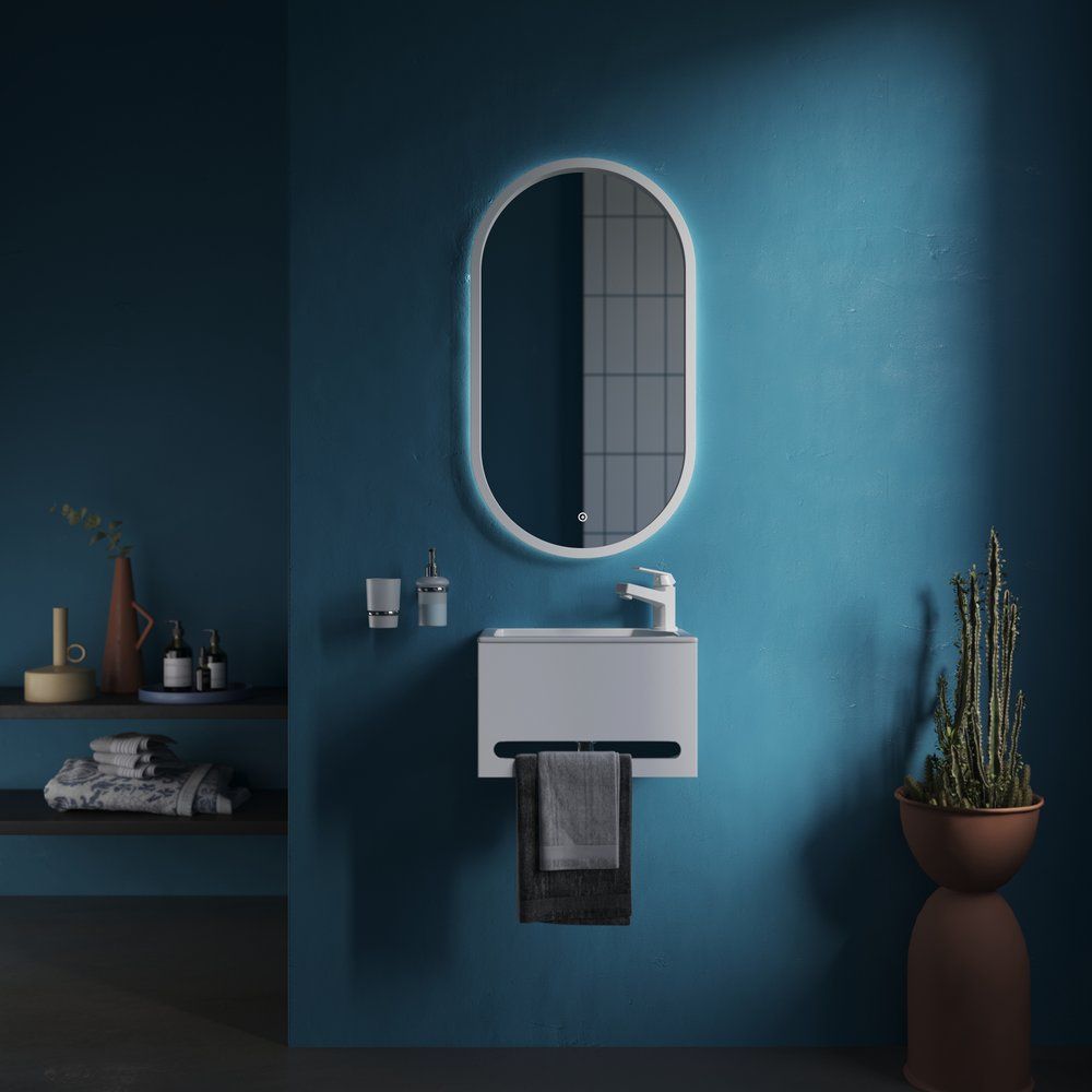 Гарнитур для ванной комнаты DIWO Казань 40, R — это идеальный выбор для тех, кто ценит сочетание современного стиля и функциональности. Комплект включает в себя тумбу с раковиной и овальное зеркало с сенсорной подсветкой, выполненные из высококачественного МДФ. Мебель из коллекции "Казань" превращает любую ванную комнату в уютное и стильное пространство, подчеркивая вашу индивидуальность.