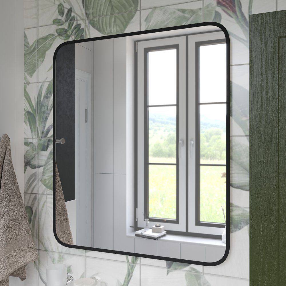 - Зеркало в черной оправе, добавляющее изысканности вашему пространству.