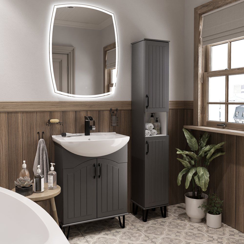 Мебель для ванной DIWO Сочи 65 в цвете антрацит — это идеальное сочетание современного дизайна и функциональности. Гарнитур включает в себя все необходимое для создания стильного и комфортного пространства вашей ванной комнаты. Простая элегантность и практичность деталей делают этот комплект отличным выбором для любого интерьера.