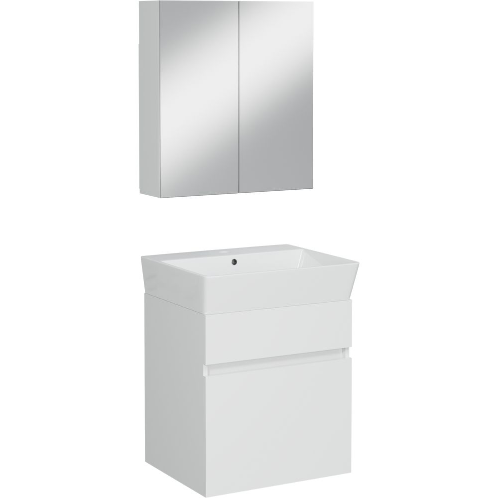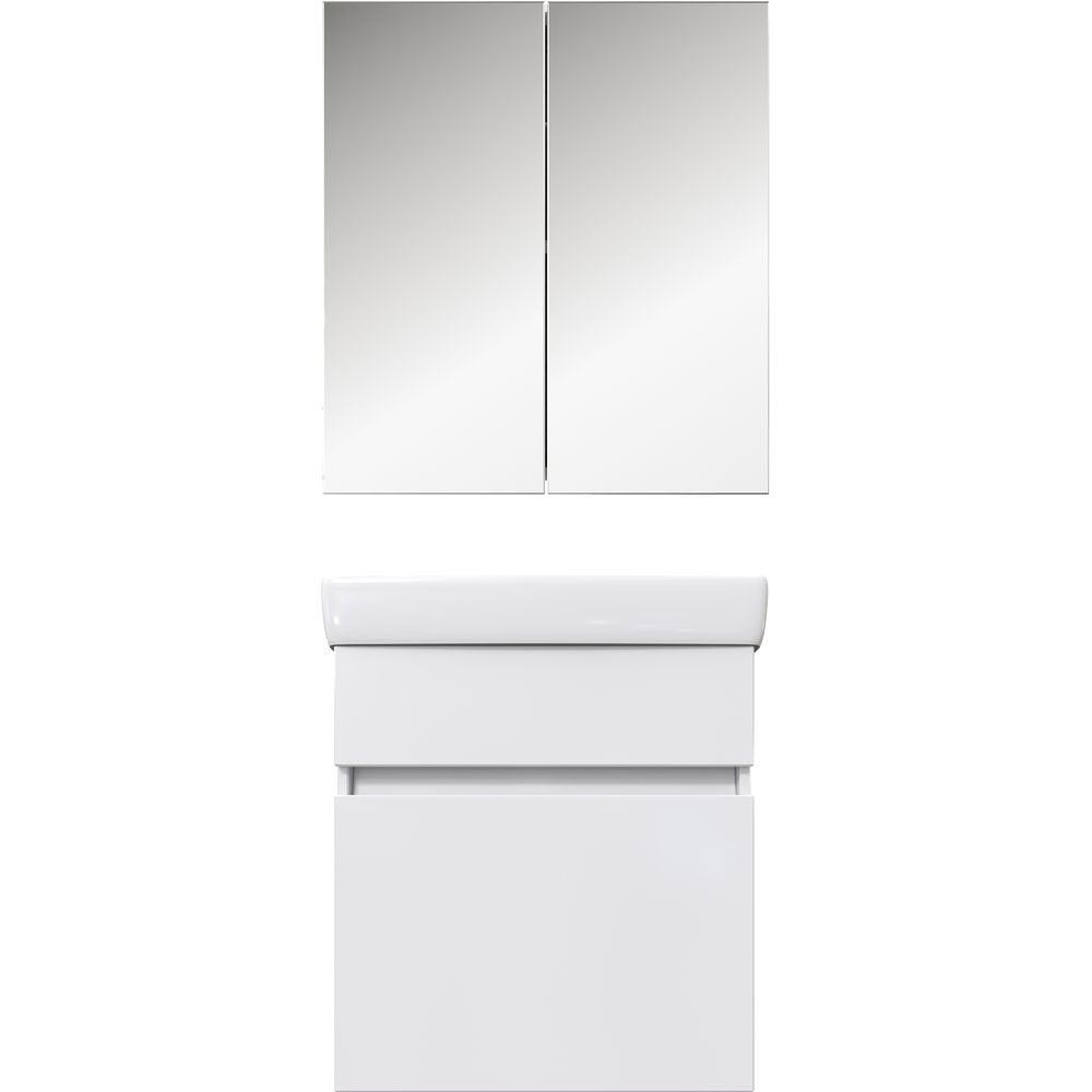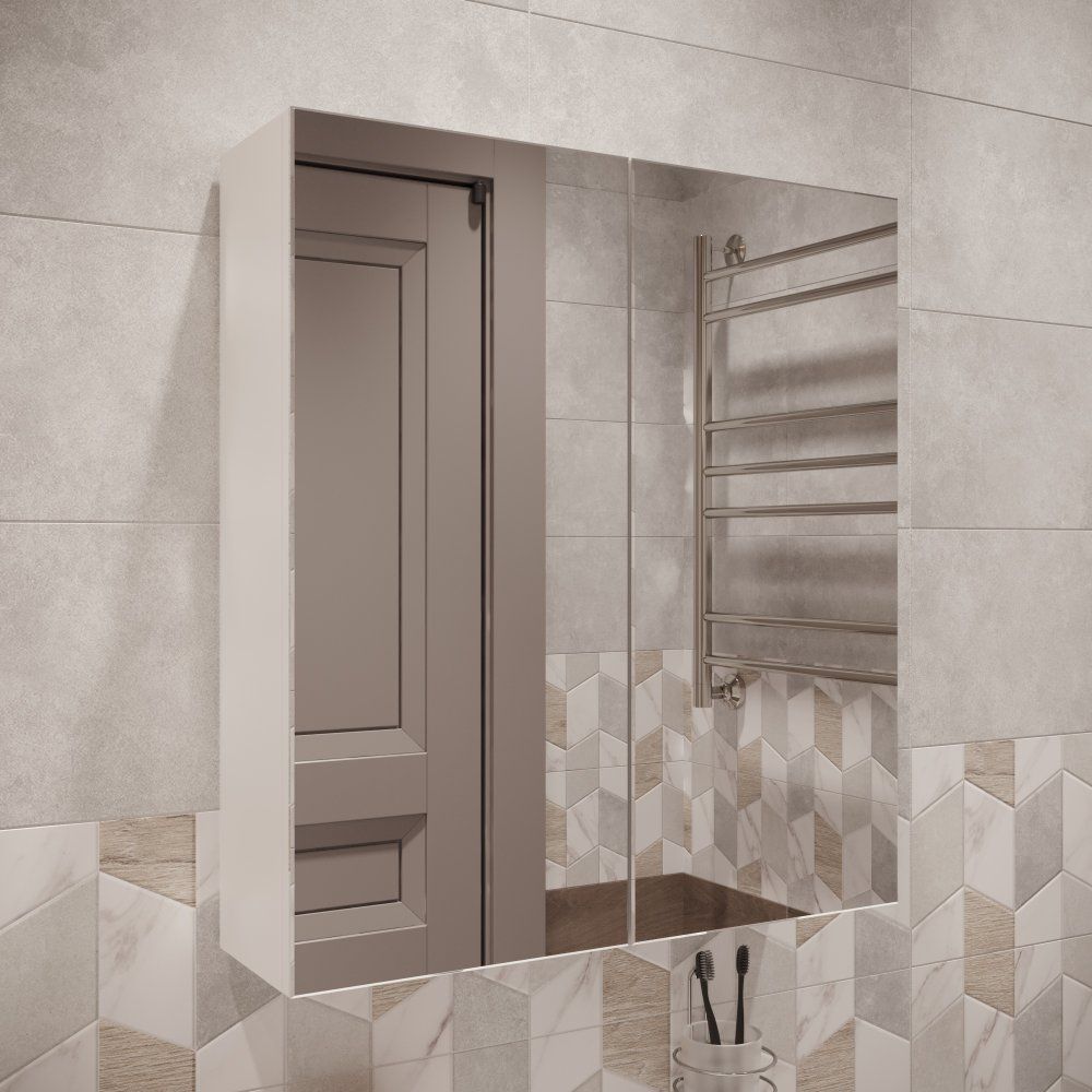 Кроме того, в комплект входит зеркало-шкаф DIWO Архангельск 50 с размерами 50,4x14,1x55,4 см, выполненное из ЛДСП с покрытием из пленки и ламината. Благодаря доводчикам, двери закрываются плавно и бесшумно.
