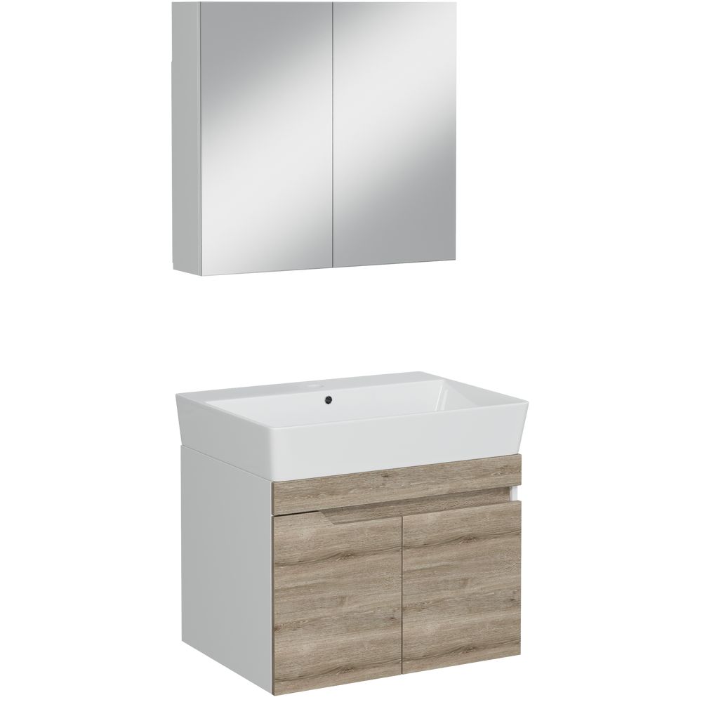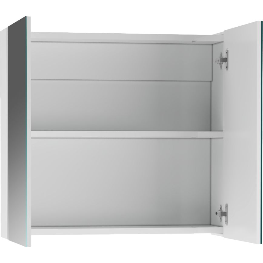 Зеркало-шкаф: размеры 60,4x14,1x55,4 см, корпус из ЛДСП с покрытием пленкой и ламинатом. Оснащено механизмом доводчика для плавного закрывания.