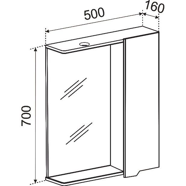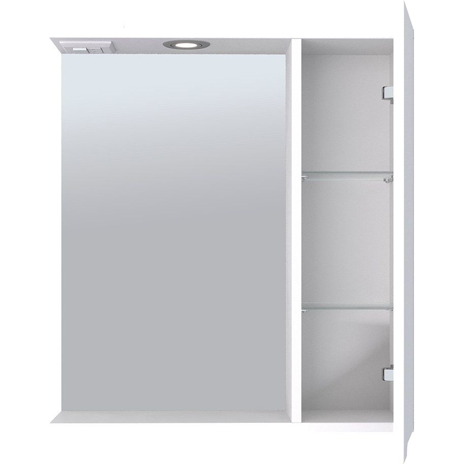 Зеркало Emmy Агата R, 50: Ширина 50 см, глубина 16 см, высота 70 см. Каркас из ЛДСП с механической кнопкой электровыключателя и доводчиком. Встроенная розетка и подвесное крепление. Гарантия 1 год.