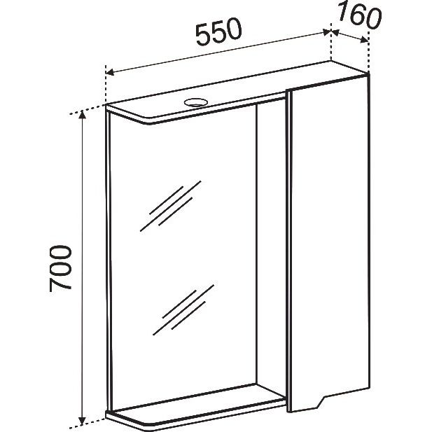 Зеркало Emmy Агата R, 55 размером 55x16x70 см подвесное, имеет встраиваемую розетку и электровыключатель. Его корпус выполнен из ЛДСП с пленочным покрытием.