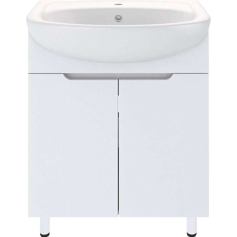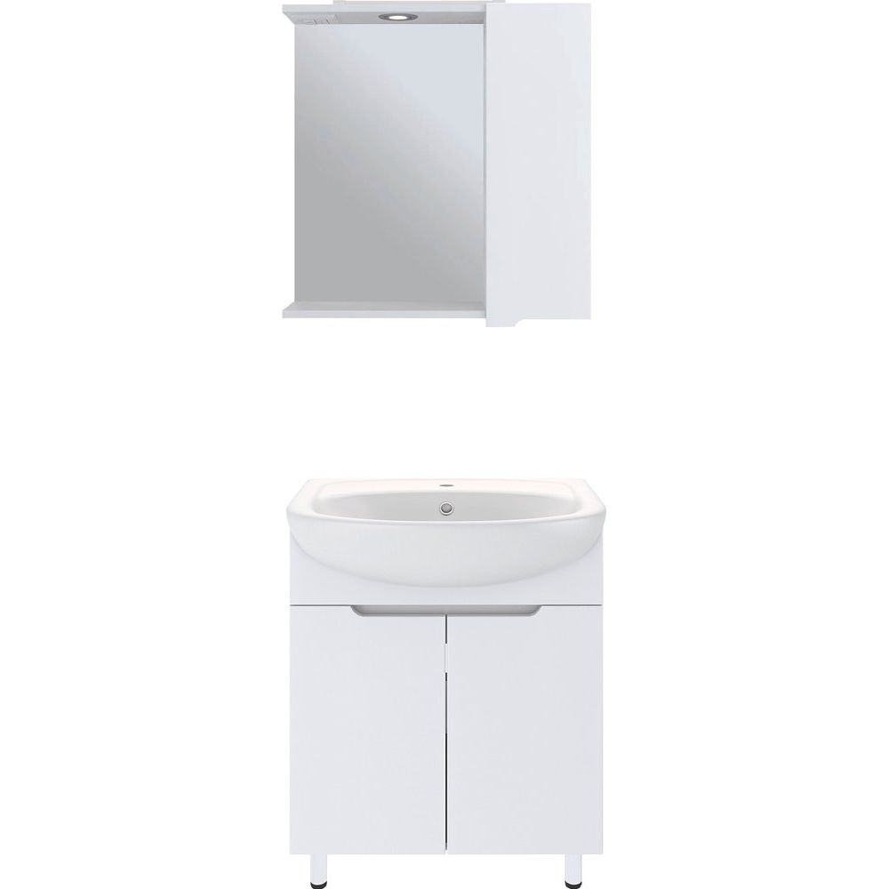 В комплект гарнитура Emmy Агата 60 входит тумба, мебельная раковина и зеркало. Тумба размером 59x30x78 см из ЛДСП, устойчивая благодаря напольной установке, оснащена механизмом доводчика. Раковина Rosa Уют 60 из фаянса имеет габариты 61,5x46,5 см, и выполнена с отверстием под смеситель и встроенным слив-переливом для удобства установки. К зеркалу размером 60x16x70 см добавлены подвесы и встроенная розетка с электровыключателем.