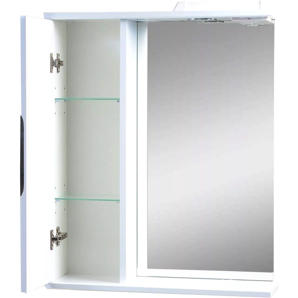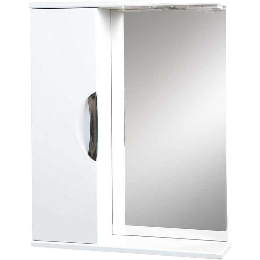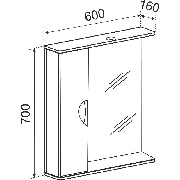 - Зеркало: Размеры 60x16x70 см, материал МДФ с пленочным покрытием, присутствует подсветка и розетка. Зеркало подвесное с механической кнопкой-выключателем.