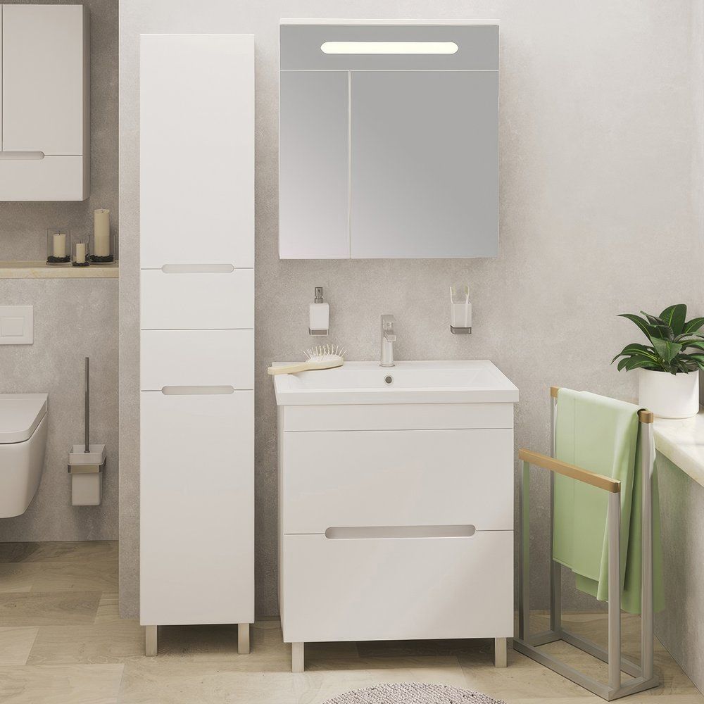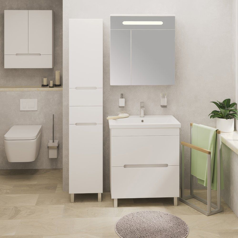 Гарнитуры для ванной комнаты Emmy коллекции Вита — это элегантное решение для современного интерьера. Каждая деталь в этой линии продумана до мелочей, чтобы сделать вашу ванную комнату максимально функциональной и эстетически привлекательной. Комплект включает в себя тумбу напольного типа, мебельную раковину и зеркало-шкаф с подсветкой, идеально подходящие для тех, кто ценит комфорт, качество и стиль.