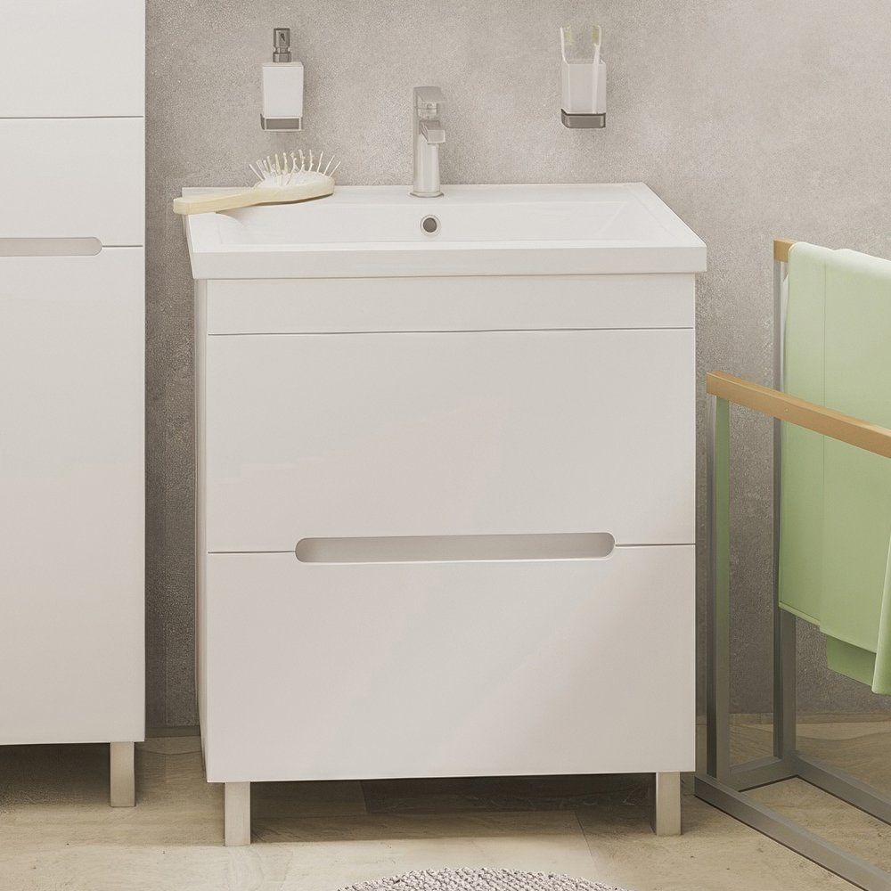 - Тумба для комплекта Emmy Вита 70: габариты 66,5x44x78 см, напольная конструкция из МДФ, покрытая пленкой, с механизмом доводчика и ящиками. Гарантия — 1 год. Производство Россия.