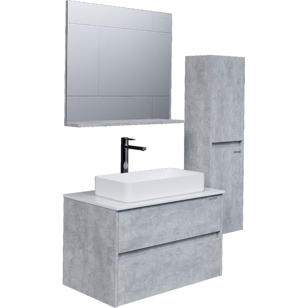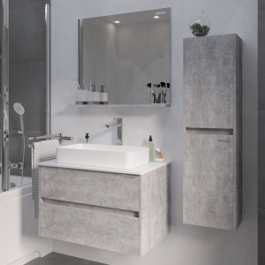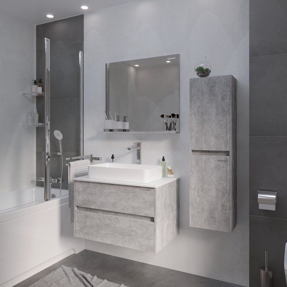 Коллекция мебели для ванной Grossman Эдванс — это стильное и функциональное решение для вашего домa. Мебель в светлом цементном цвете гармонично впишется в любой интерьер, а продуманный дизайн гарнитура добавит комфорта в вашу повседневную рутину. Столешница из МДФ покрыта белой плёнкой Soft Touch, что обеспечит приятные тактильные ощущения и легкость в уходе. Раковина Grossman GR-3031 из фаянса подчеркнет современный стиль вашей ванной комнаты, а зеркало из той же коллекции станет завершающим штрихом.