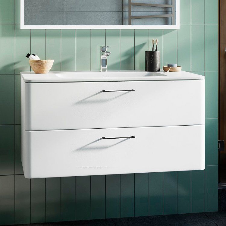 - Мебельная раковина IDDIS на 100x47 см из фарфора комплектуется слив-переливом и имеет одно готовое отверстие под смеситель.