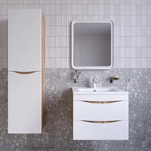 Тумба IDDIS Cloud 60 подвесная обладает габаритами 60,3x45,5x50 см и выполнена из качественного ЛДСП с покрытием из пластика и ламината. Фасад изготовлен из МДФ, покрытого эмалью, что обеспечивает устойчивость к влаге и механическим повреждениям. Комплект дополняет мебельная раковина из фарфора размером 60x46,5 см, оснащенная слив-переливом и готовым отверстием для смесителя. Зеркало IDDIS Esper 60 размером 60x70 см с регулируемой подсветкой и сенсорным выключателем добавляет нотку современного удобства.