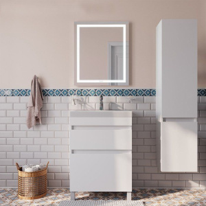 В комплект также входит мебельная раковина IDDIS Optima Home 60 из высококачественного фарфора размером 60,5x38,5 см. Оснащена слив-переливом и отверстием под смеситель. Зеркало IDDIS Zodiac 60 украшается термообогревом и подсветкой в полотне, имеет механическое управление и покрыто антизапотевателем.