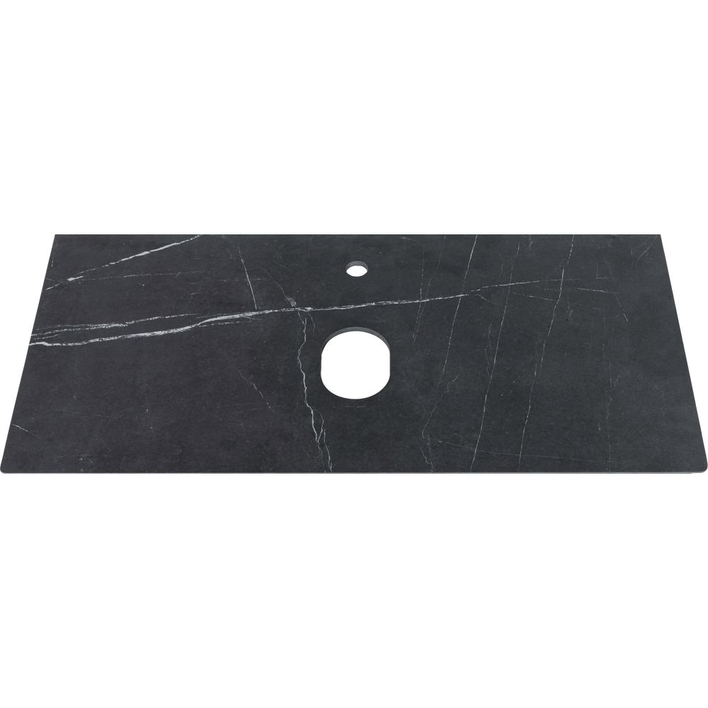 - Столешница: из керамогранита, в черном мраморе, габариты 100.1x48.9x1 см, с отверстием для смесителя.