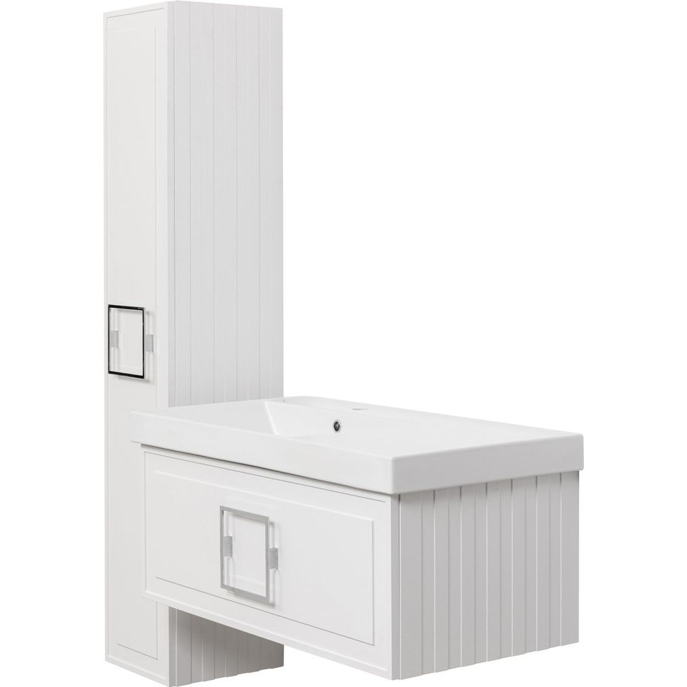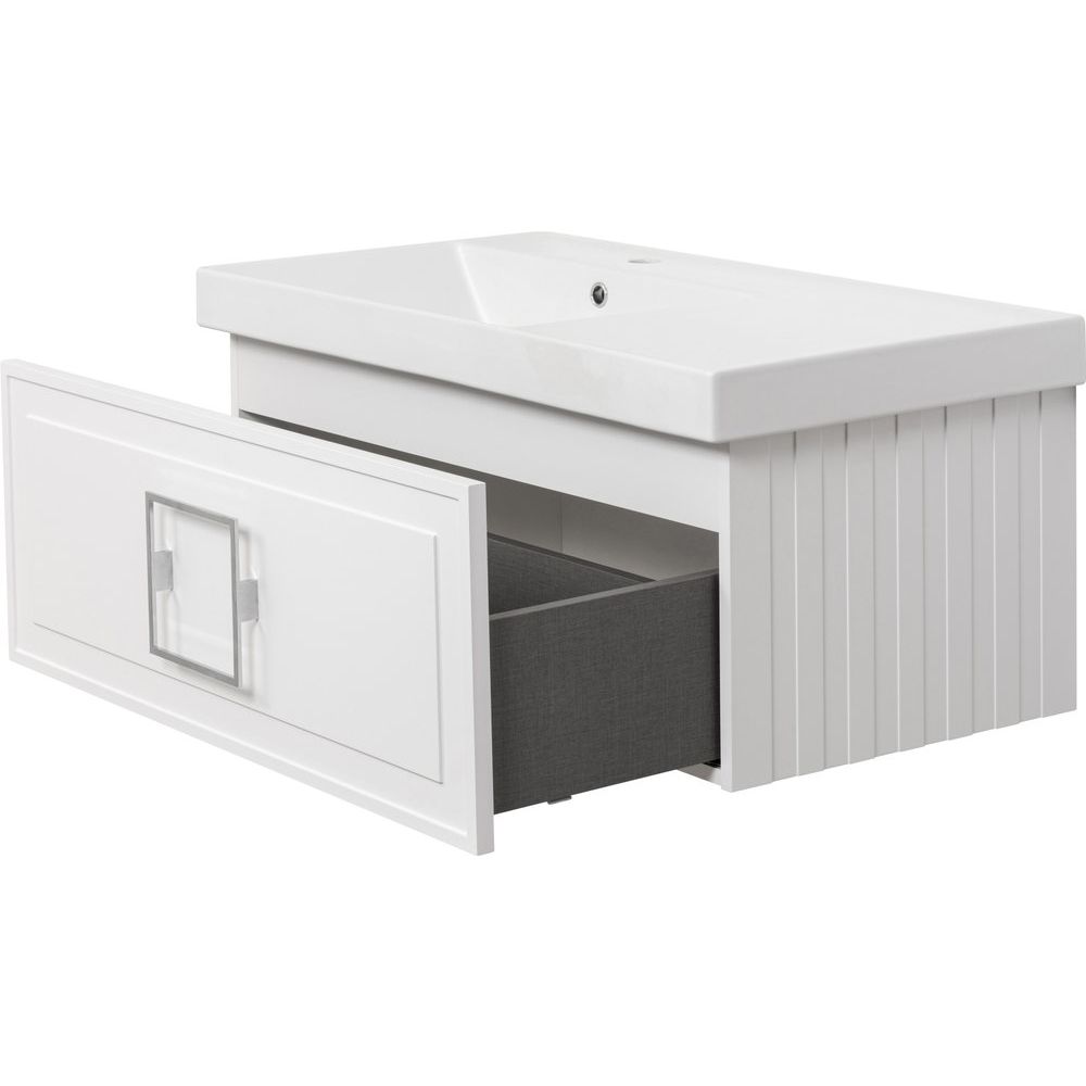 Тумба для комплекта La Fenice Cubo 90 имеет размеры 87,6x49,4x35 см и выполнена из МДФ, покрытого эмалью. Она подвесная и оснащена механизмом доводчика, обеспечивающим плавное и бесшумное закрывание ящиков. Мебельная раковина из фаянса размером 90,5x48,5 см поставляется со встроенным сливом-переливом, но донный клапан необходимо приобретать отдельно. Зеркало размером 80x2x60 см выполнено с интегрированной подсветкой и инфракрасным выключателем. Ручки из сплава металлов обеспечивают надежность и комфорт использования.