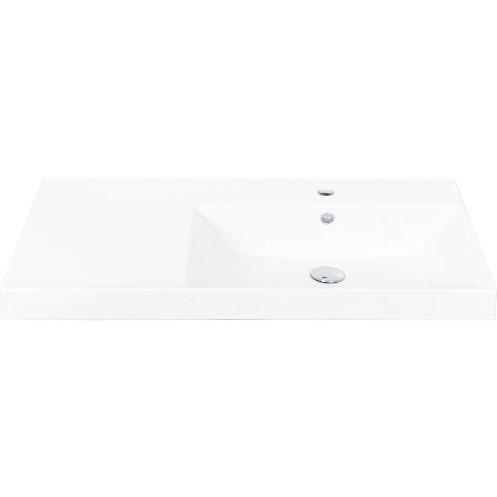 Мебельная раковина Cubo 90 R изготовлена из фаянса и имеет встроенный слив-перелив. Ширина составляет 90,5 см, глубина — 48,5 см, что прекрасно сочетается с тумбой. Необходимо приобретение донного клапана отдельно.