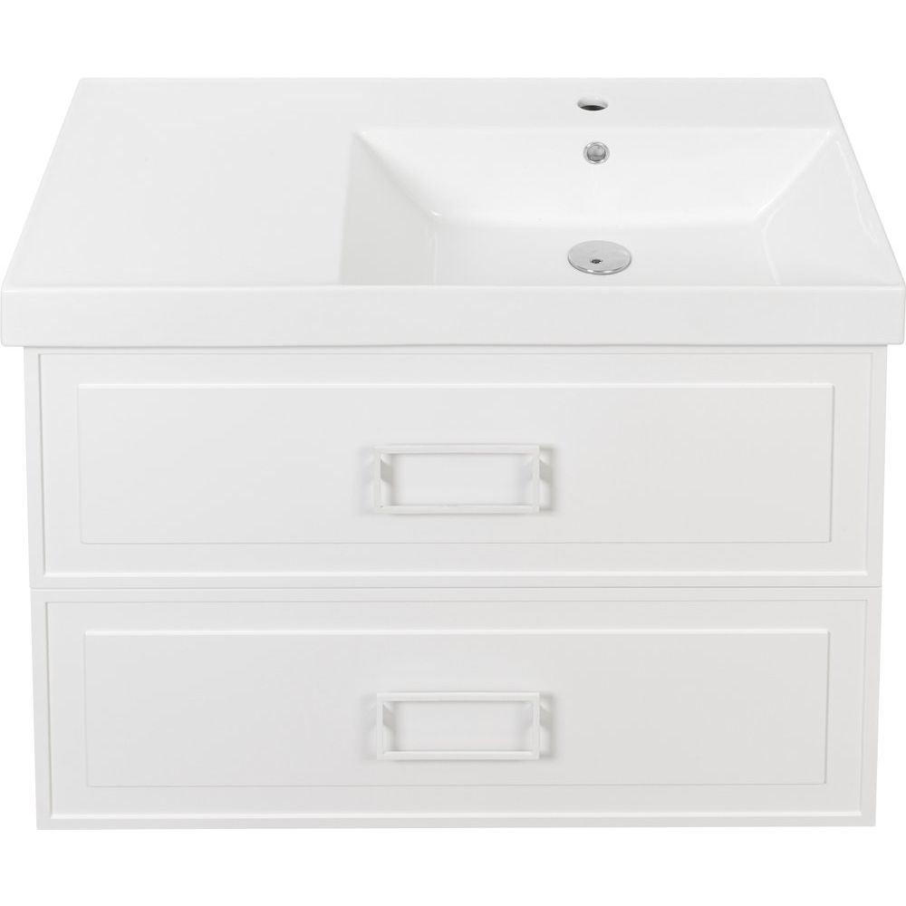 В комплект входит подвесная тумба La Fenice Cubo Twin 90. Ее габариты составляют 87,6x49,4x61,3 см, корпус и фасад выполнены из МДФ, покрытого эмалью. Тумба оснащена ящиками с механизмом доводчика, что обеспечивает плавное и бесшумное закрывание.