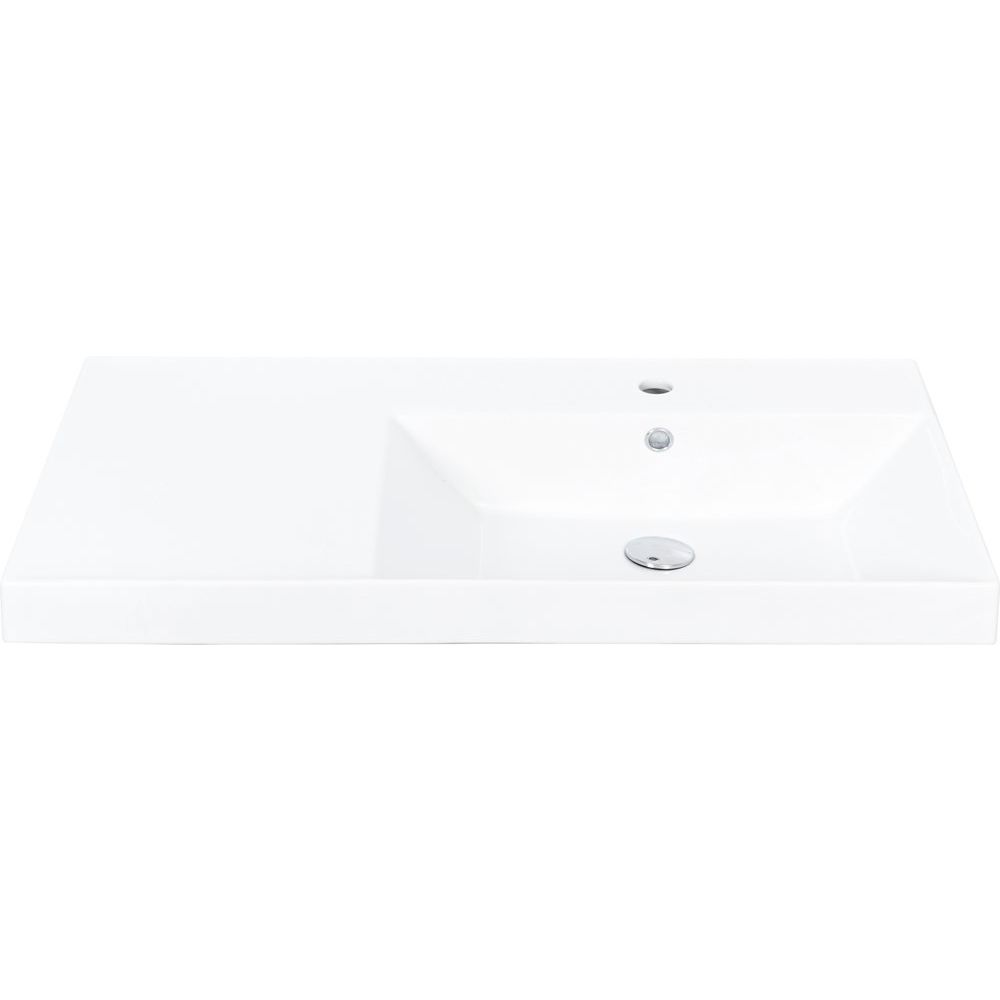 Мебельная раковина La Fenice Cubo 90 R изготовлена из фаянса, имеет размеры 90,5x48,5 см. В комплект входит встроенный слив-перелив, раковина оборудована одним отверстием под смеситель, а диаметр подходящего сифона составляет 3.2 см.