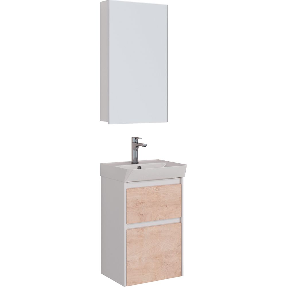 Тумба для комплекта Lemark Combi 45 включает шкаф с размерами 42,6x34,5x65 см, который может быть подвесным или напольным. Она выполнена из ЛДСП с эмалевым или ламинированным покрытием, а встроенные ящики снабжены доводчиками для плавного и бесшумного закрывания. Мебельная раковина Lemark Neon 45 изготовлена из фаянса, её размеры — 45x41,5 см. Для установки раковины необходимо приобрести донный клапан и слив-перелив. Зеркало-шкаф Lemark Universal 45, выполненное из ЛДСП без подсветки, с размерами 45x14,4x79 см, дополняет гарнитур, обеспечивая удобство хранения.