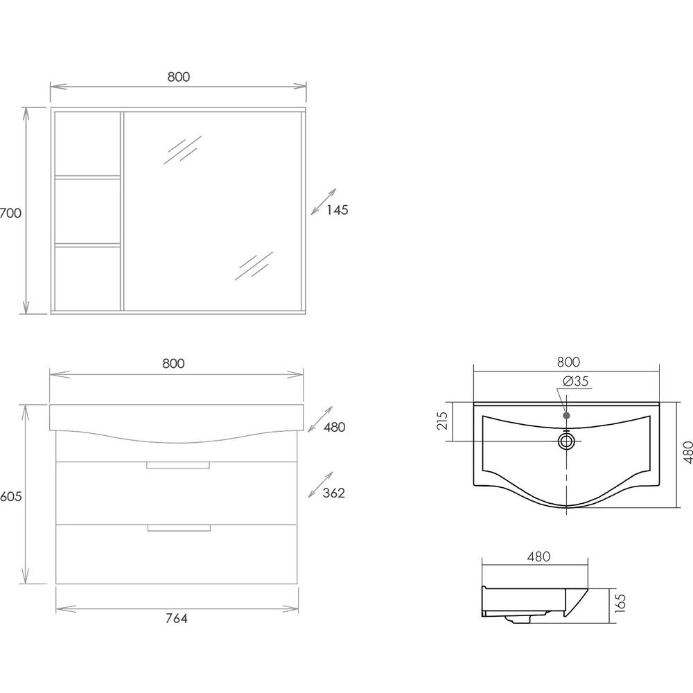 - Комплектация с зеркалом с подсветкой, управляемой сенсорным выключателем.