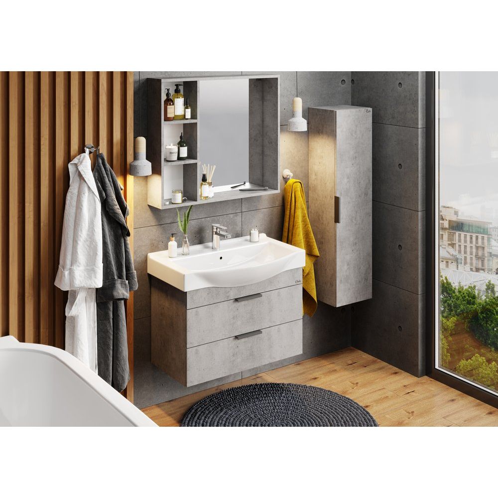 Представляем вашему вниманию набор мебели для ванной комнаты Onika Девис 80.13 в современном цвете бетон чикаго. Этот гарнитур станет идеальным дополнением вашей ванной, сочетая в себе стильный дизайн и функциональность. Благодаря использованию современных материалов и технологий, мебель Onika обеспечивает долговечность, а продуманный подход к деталям гарантирует удобство в использовании каждый день.