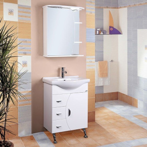 В комплект входит тумба Onika Луна 60.106 размерами 56x33,6x83 см, напольная конструкция без механизма доводчика. Корпус выполнен из ДСП, а фасад из МДФ с пленочным покрытием, что придает гарнитуру влагостойкость и стильный вид. Хромированная фурнитура дополняет современный облик гарнитура. Мебельная раковина Santek 60 выполнена из фарфора и имеет размеры 60,5x44,5 см. Зеркало-шкаф Onika Луна R 60 с подсветкой, размерами 60x24,5x71,5 см, оборудовано электровыключателем с механической кнопкой и розеткой для дополнительного удобства.