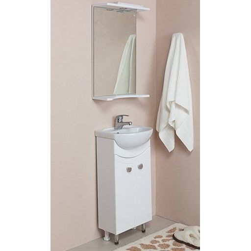 - Практичность: Несъемные полки и удобные дверки в тумбе.
