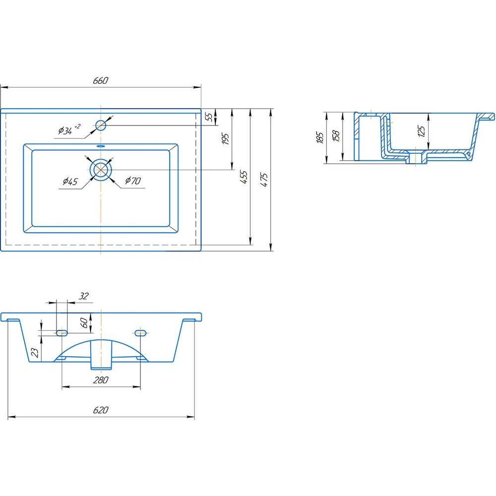 Мебельная раковина Kirovit Оскар отличается размерами 66x47,5 см и изготовлена из фаянса. Имеет встроенный слив-перелив и готовое отверстие под смеситель. Для установки требуется сифон диаметром 3.2 см, донный клапан необходимо приобрести отдельно.
