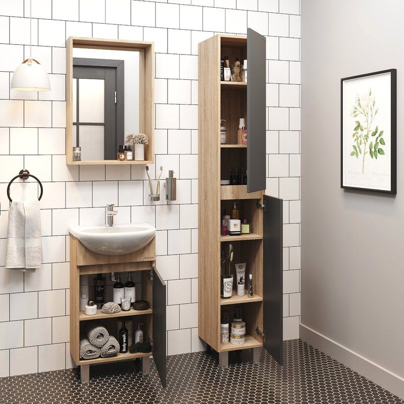 Мебель для ванной комнаты Onika "Милтон 45" в стильном сочетании серого и дуба сонома станет превосходным дополнением вашего интерьера. Этот напольный гарнитур объединяет в себе современные эстетические решения и функциональность, обеспечивая комфорт и удобство при повседневном пользовании.