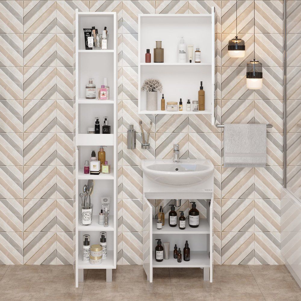 Мебель для ванной комнаты Onika Милтон 50 напольная предлагает идеальное сочетание функциональности и стильного дизайна. Комплект, который включает в себя тумбу, раковину и зеркало-шкаф, создан для тех, кто ценит качество и практичность. Элегантный белый цвет и классический стиль делают этот гарнитур универсальным решением для любого интерьера ванной комнаты.