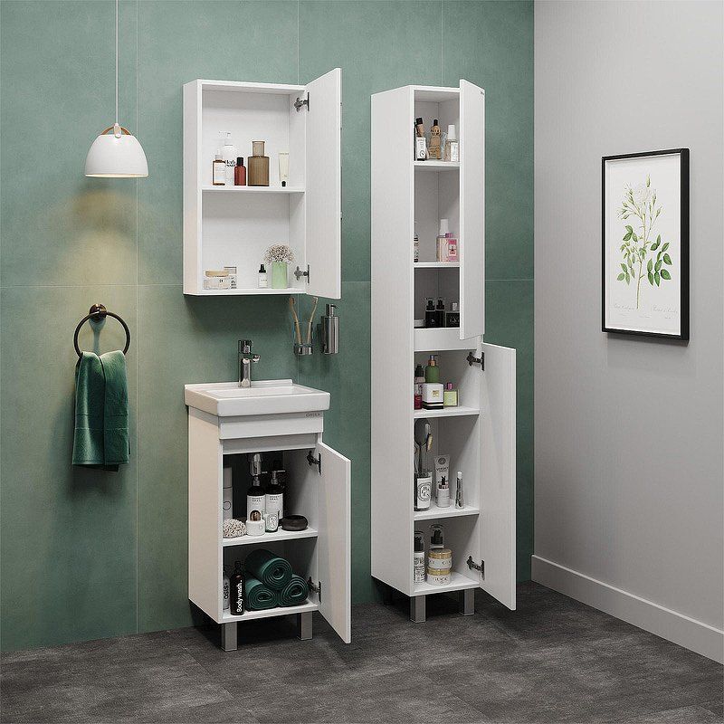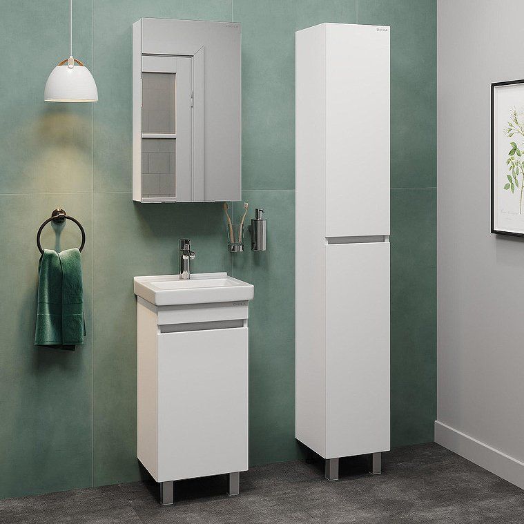 - Компактность и универсальность: Гарнитур идеально подходит для небольших ванных комнат.