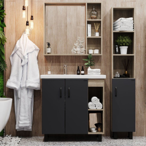 Мебель для ванной комнаты Onika Тимбер 80.10 R в цвете серый дуб сонома — это стильное и функциональное решение для современного интерьера. Гарнитур включает в себя вместительную тумбу с механизмом плавного закрывания, элегантную мебельную раковину Kirovit Фостер и удобное зеркало с дополнительной полкой. Такая мебель не только украсит вашу ванную, но и обеспечит удобство и комфорт в использовании каждый день.