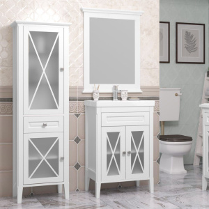 Тумба для комплекта Opadiris Палермо 60 выполнена из МДФ с эмалевым покрытием, украшена стильной хромированной фурнитурой. Габариты тумбы составляют 56,2x42,4x82,5 см. Тумба напольная, оснащена механизмом доводчика для плавного закрывания. Дверки и ящики оборудованы нажимным механизмом открывания, внутренние съемные полки обеспечивают дополнительное удобство. Мебельная раковина Opadiris CeraStyle Frame 60 изготовлена из качественного фаянса и имеет размеры 60x45 см. Она оснащена встроенным сливом-переливом и отверстием под смеситель, а донный клапан необходимо приобрести отдельно. Зеркало в комплекте также выполнено из МДФ, его размеры составляют 60x4,5x88 см, и оно оборудовано подвесами для легкой установки. Гарантия на всю продукцию составляет от 3 до 5 лет в зависимости от элемента.