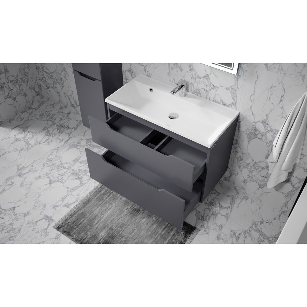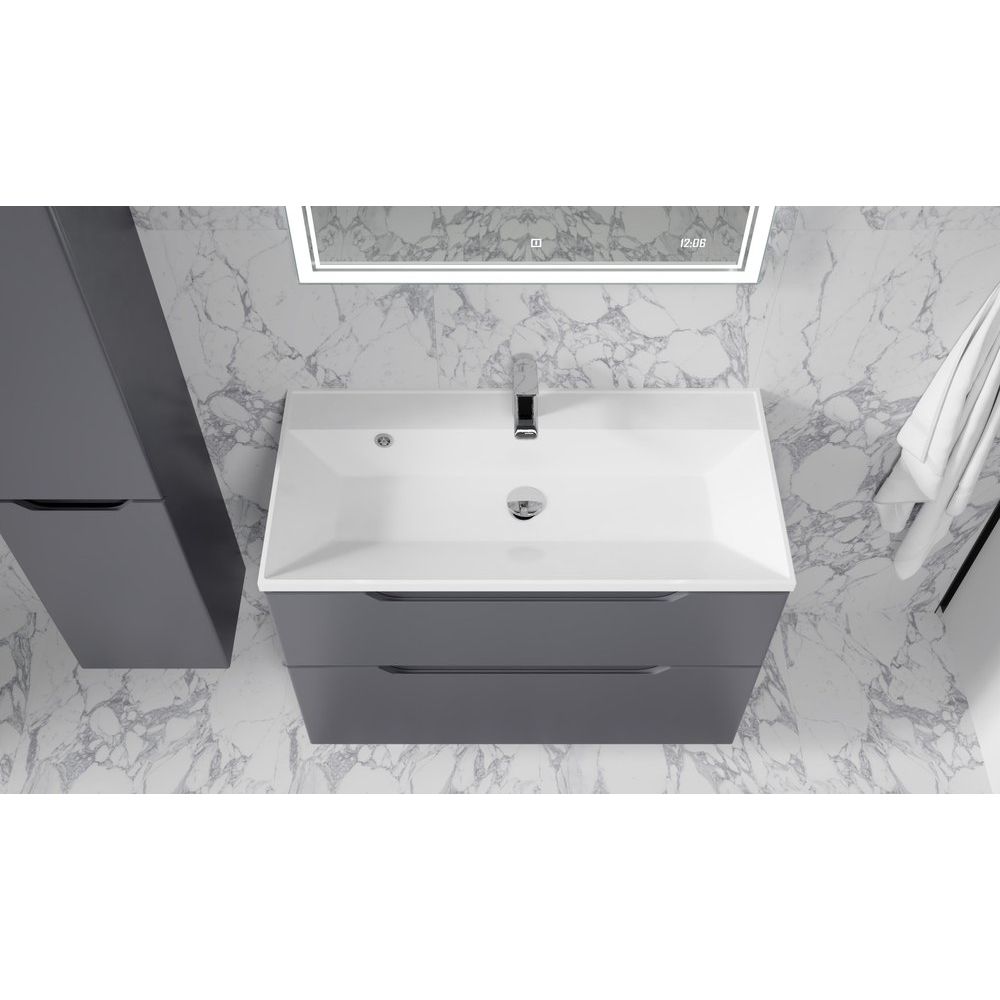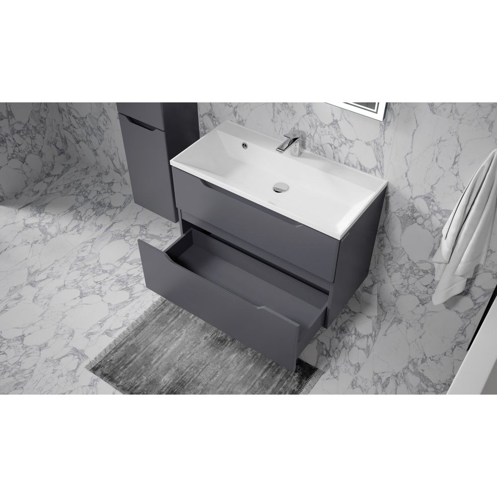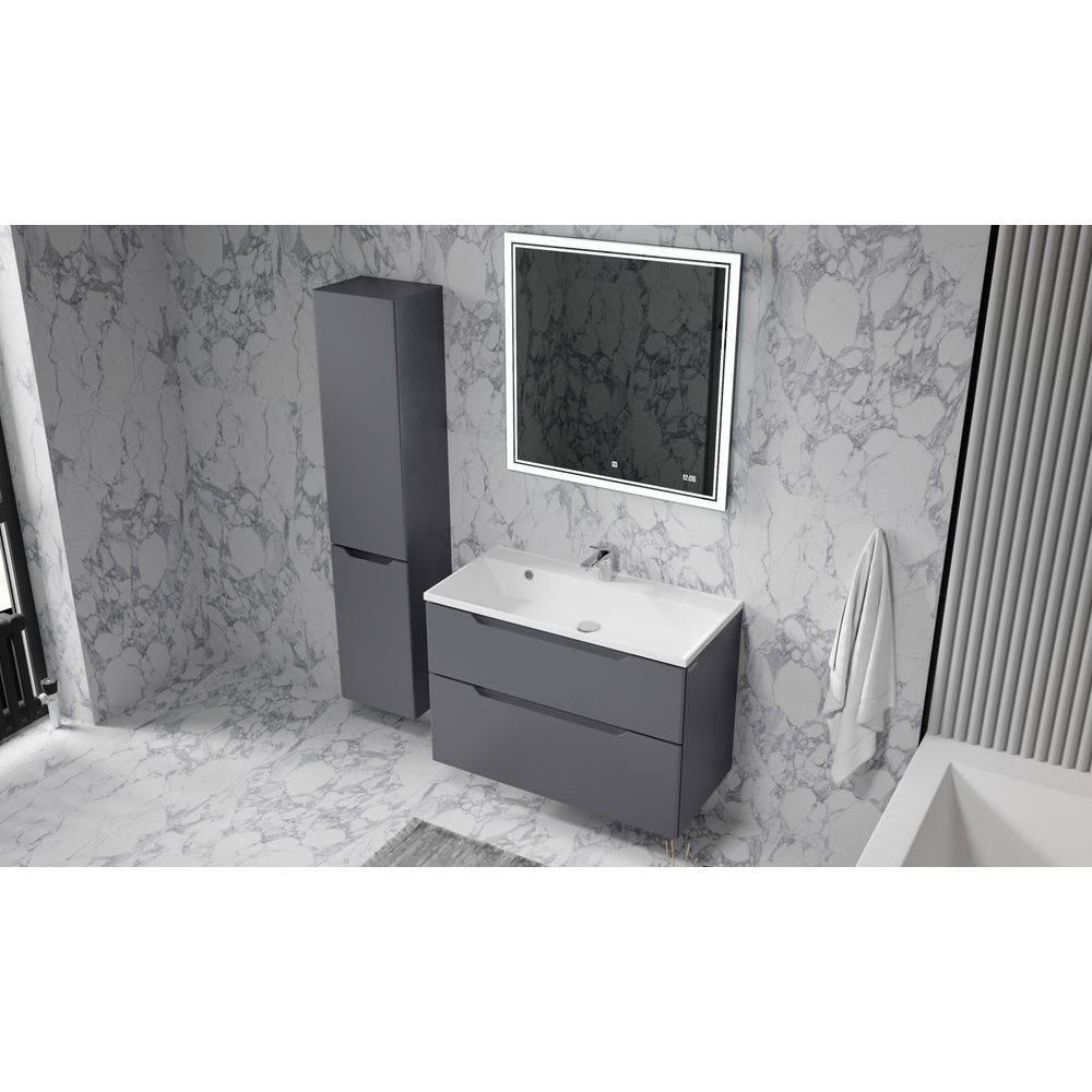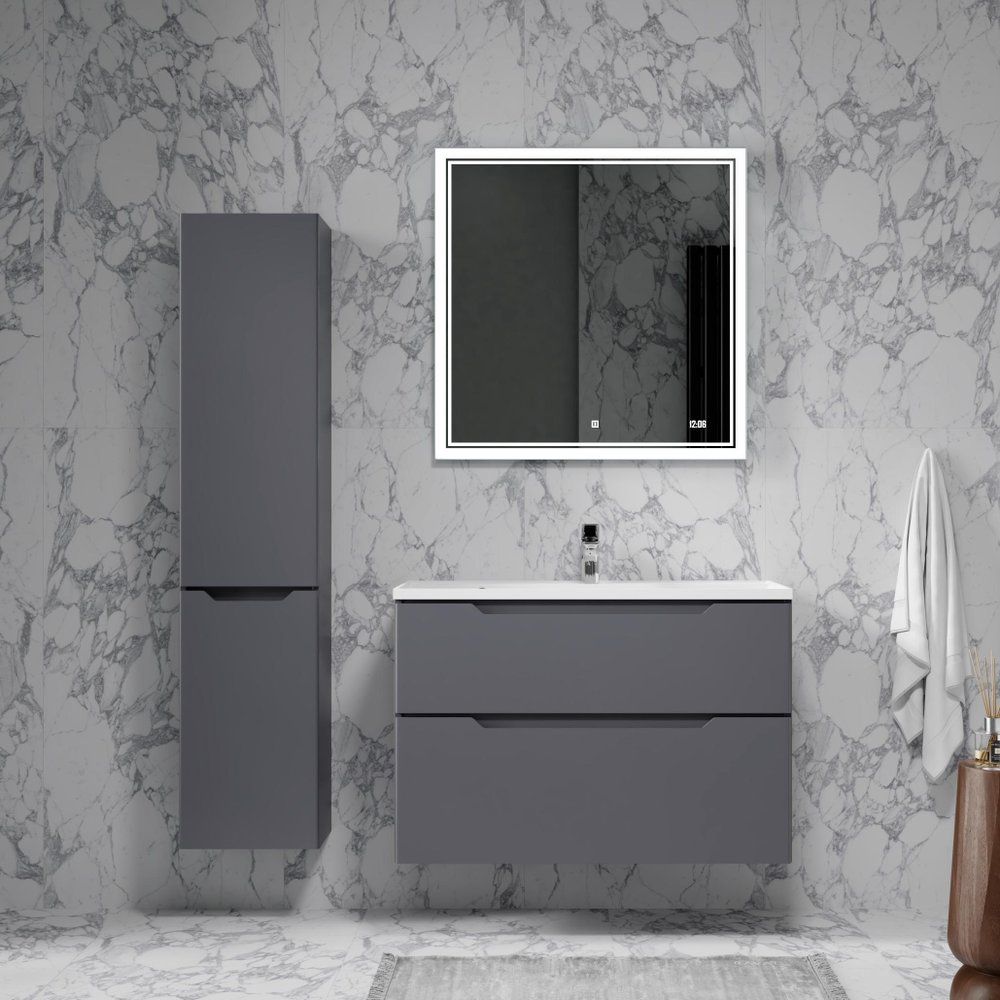 Воплощайте стиль и функциональность в ванной комнате с подвесным гарнитуром Raval Wector 90 в элегантном антрацитовом оттенке. Эта мебель сочетает в себе передовые технологии и утонченный дизайн, создавая атмосферу уюта и комфорта. Подвесная конструкция придаёт легкость пространству и делает уборку укромных уголков проще, а аккуратная отделка и высокое качество материалов говорят о безупречном вкусе владельца.