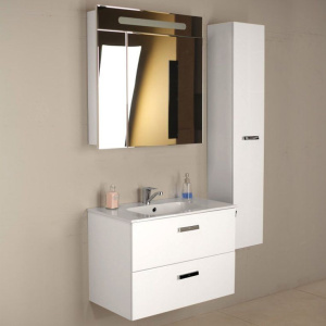 Тумба Roca Victoria Nord 80 белая имеет размеры 78,5x45x56,5 см и выполнена из ДСП с эмалевым покрытием. Она оснащена механизмом доводчика для плавного закрывания и имеет хромированную фурнитуру. В комплекте идет фаянсовая раковина Roca Victoria Nord Unik 80 размером 80x46 см с вмонтированным сливом-переливом и отверстием для смесителя. Зеркало-шкаф Roca Victoria Nord 80 размера 80x14x81 см также из ДСП с эмалью, оснащено внутренней подсветкой и доводчиком. Гарантия на мебель — 3 года, на раковину — 10 лет.