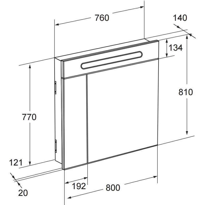 Зеркало-шкаф Roca Victoria Nord 80: размеры 80x14x81 см, из ДСП с эмалевым покрытием, оснащено подсветкой. Без выключателя, с доводчиком и дополнительной подсветкой внутри. Гарантия 3 года.