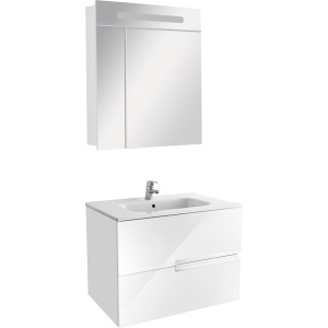 Комплект мебели для ванной Roca Victoria Nord Ice Edition 80 белого цвета станет настоящей находкой для тех, кто ценит стиль и функциональность. Этот гарнитур позволяет скрыть все коммуникации, сохраняя к ним удобный доступ. Он создаст комфортный и современный интерьер вашей ванной комнаты. Прекрасно подходит для помещений с повышенной влажностью благодаря использованию высококачественных влагостойких материалов. Эмалевая поверхность устойчива к истиранию и царапинам. Удобно разместите гигиенические принадлежности в выдвижных ящиках и на полках, а встроенное освещение и надёжная фурнитура с бесшумным механизмом закроют любую дверь плавно. Комплект включает прямоугольную фаянсовую раковину с широкими бортиками, рассчитанную на долгие годы службы.