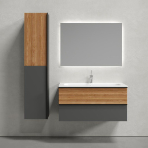 Познакомьтесь с элегантной и функциональной мебелью для ванной комнаты Sancos Delta 100 в захватывающем сочетании оттенков дуба красного и графита. Этот стильный комплект, выполненный в современном дизайне, не только украсит вашу ванную комнату, но и предоставит все необходимое для максимального комфорта и удобства. В состав гарнитура входят практичная тумба, изысканная раковина Ceramicanova Element и зеркало с современными функциями. Ваша ванная станет оазисом уюта и стиля!