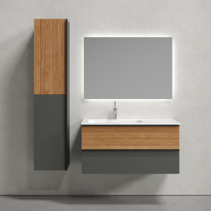 Мебель для ванной Sancos Delta 100 L в цвете дуб красный и графит — это объединение современного стиля и практичности, созданное для тех, кто ценит комфорт и качественные решения в оформлении ванной комнаты. Комплект из тумбы, раковины и зеркала обеспечивает все необходимое для функциональности и стиля, подчеркивая уникальность вашего интерьера. В оформлении использованы первоклассные материалы, а внимание к деталям ощутимо в каждом элементе набора.