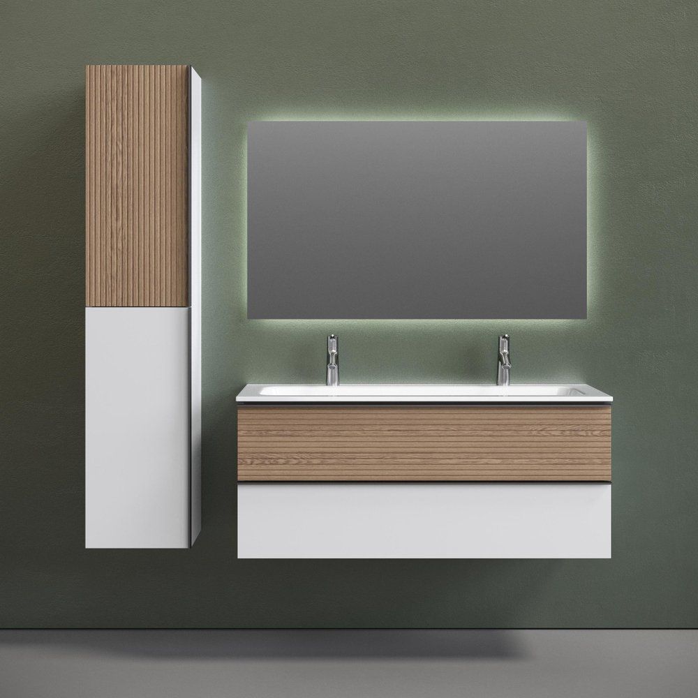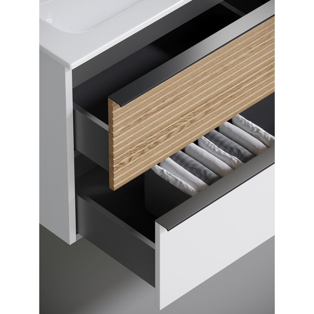 Стильная коллекция Sancos Delta — это идеальное решение для вашей ванной комнаты, сочетающее в себе современные технологии и изысканный дизайн. Комплект мебели, выполненный в светлом дубе и белом цвете, привнесет в вашу ванную атмосферу уюта и гармонии. Основное внимание в модели уделено функциональности, что делает её превосходным выбором для городских квартир и частных домов.