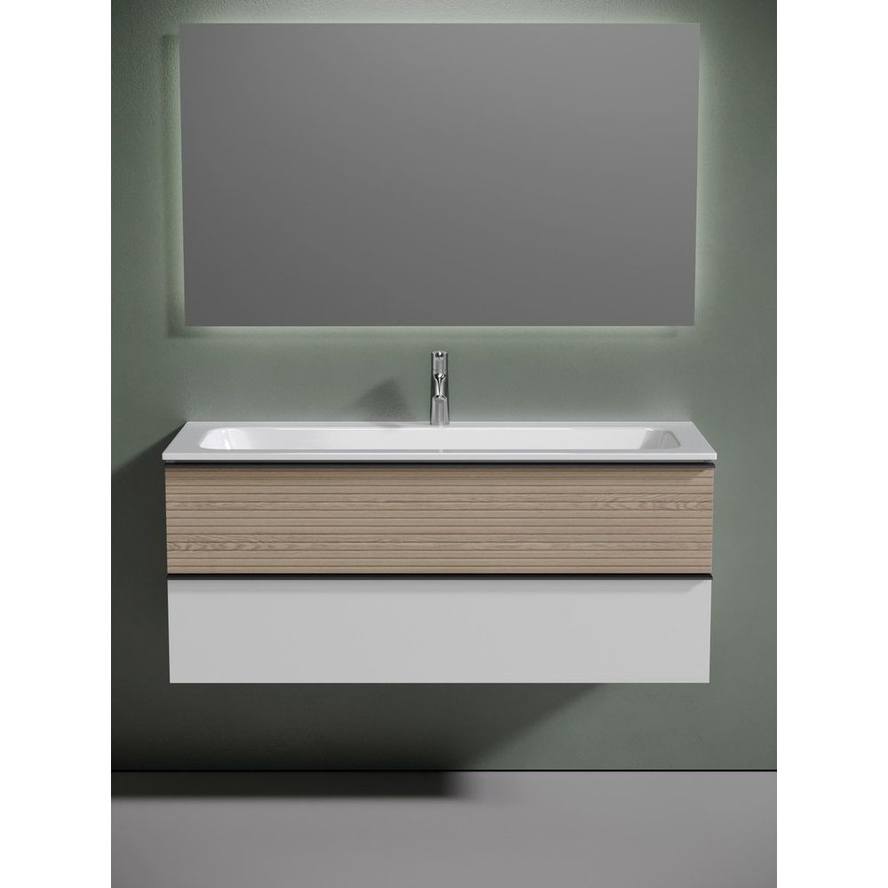 - Тумба для комплекта Sancos Delta 120: размер 119,5х44,5х50 см, подвесная, из МДФ с пленочным покрытием, оснащена механическим доводчиком, с матовой черной фурнитурой, имеет ящики, произведена в России с двухлетней гарантией.