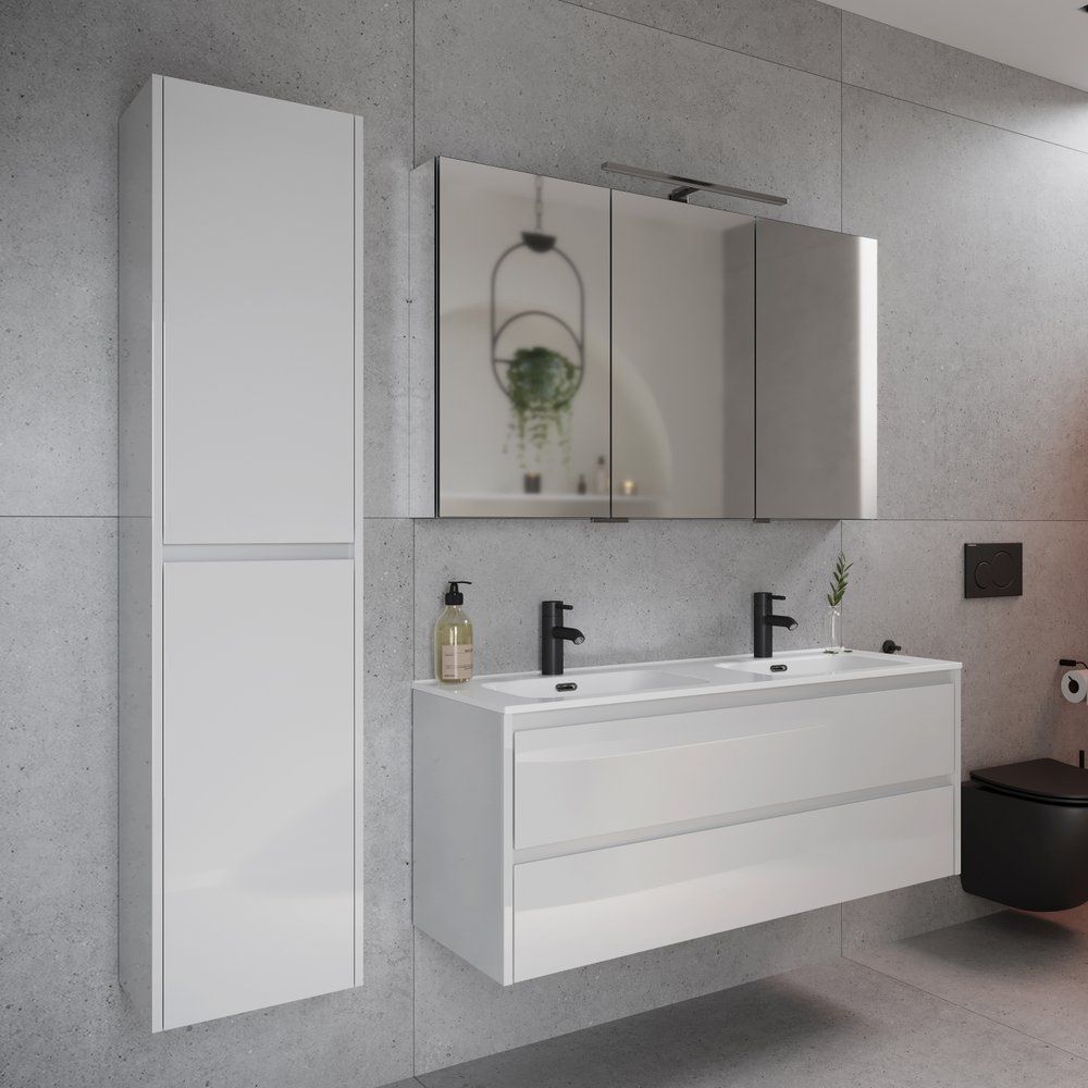 - Тумба Sancos Libra имеет размеры 119x45x50 см, выполнена из МДФ с эмалевым покрытием. Она подвесная и оснащена механизмом доводчика для плавного закрывания ящиков.