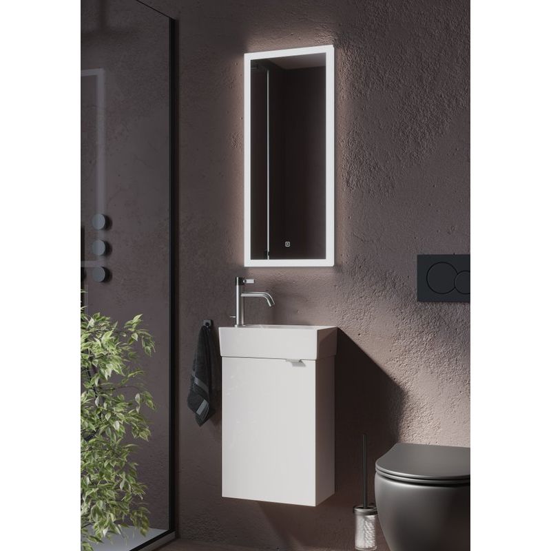 Тумба для комплекта Sancos Mini 35 L обладает габаритами 35,5x20,5x50 см. Она выполнена из высококачественного МДФ с эмалью на корпусе и фасаде, что обеспечивает долговечность и легкость в уходе. Фурнитура выполнена в цвете матового серебра, добавляя изысканности. Рукомойник Ceramicanova CN5008 L, размером 37,5x21,5 см, изготовлен из прочного фаянса и имеет отверстие для смесителя. Зеркало Sancos Polo PL с подсветкой и сенсорным выключателем обладает размерами 35x2,8x80 см, добавляя технологичности и комфорта благодаря встроенной подсветке и легкому управлению.
