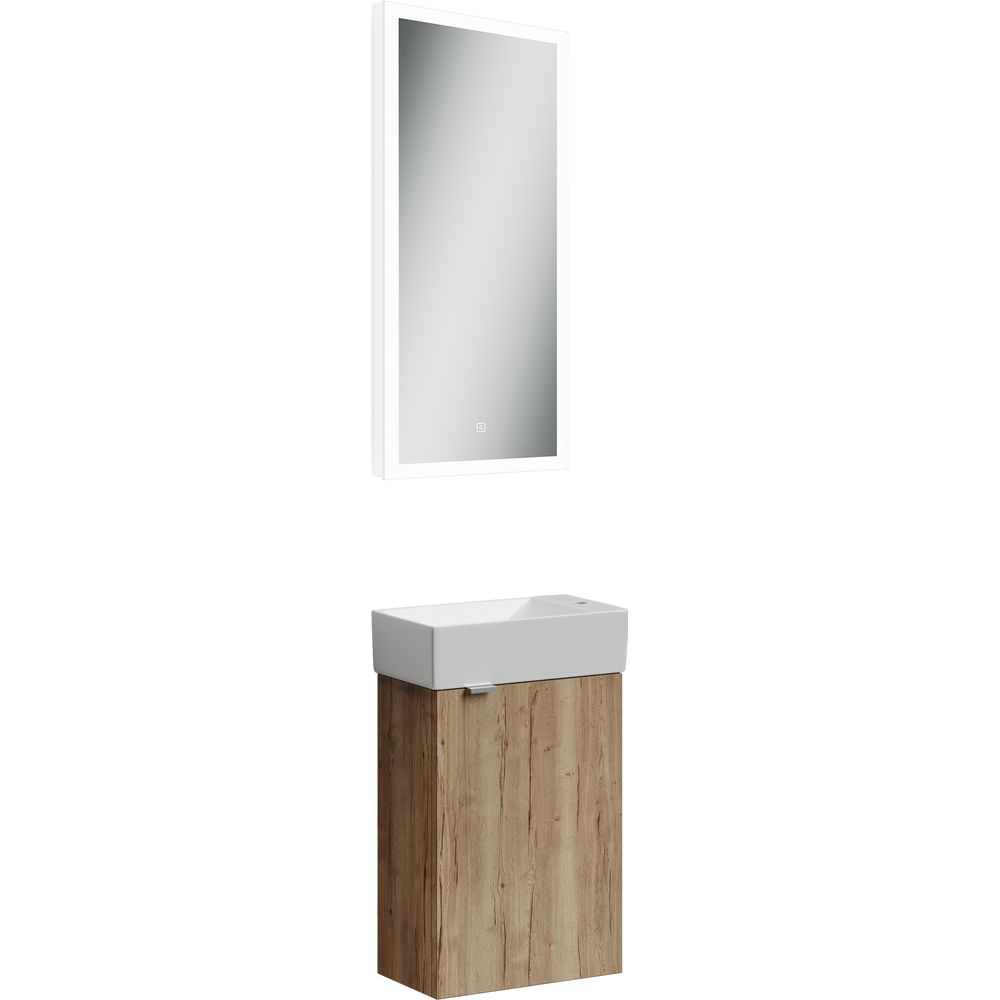 Хотите создать стильную и функциональную ванную комнату? Обратите внимание на мебельный гарнитур для ванной комнаты Sancos Mini 35 R. Этот комплект станет идеальным решением для небольших пространств, сочетая в себе эстетичность и удобство. Подвесная конструкция и натуральный цвет дуба галифакс придают комнате легкость и современный вид, а качественные материалы подчеркивают долговечность изделия.