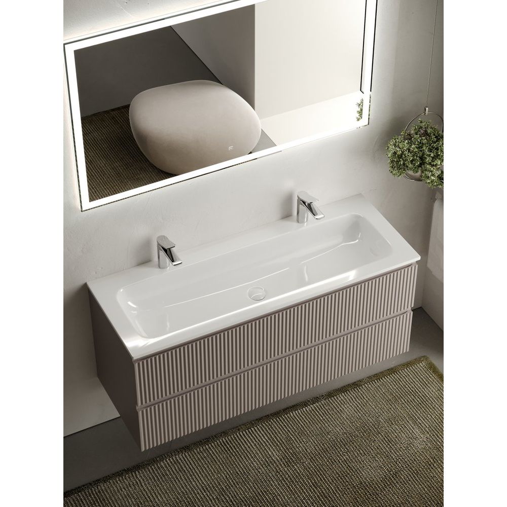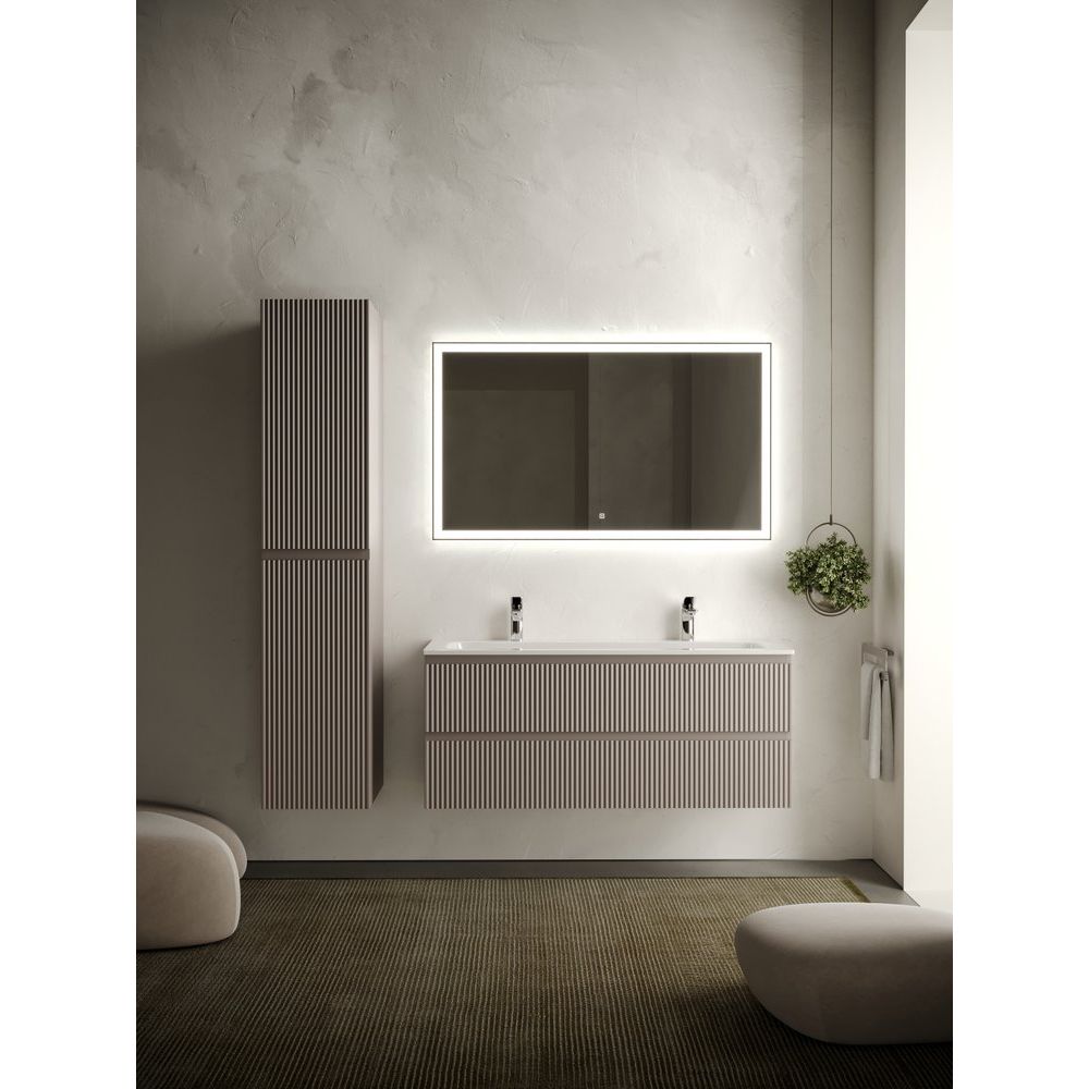 Подвесное зеркало Sancos City CI1200 (120x2,5x70 см) с пластиковой основой и настраиваемой подсветкой добавляет функциональности. Сенсорный выключатель позволяет легко управлять освещением, создавая необходимую атмосферу в ванной комнате.