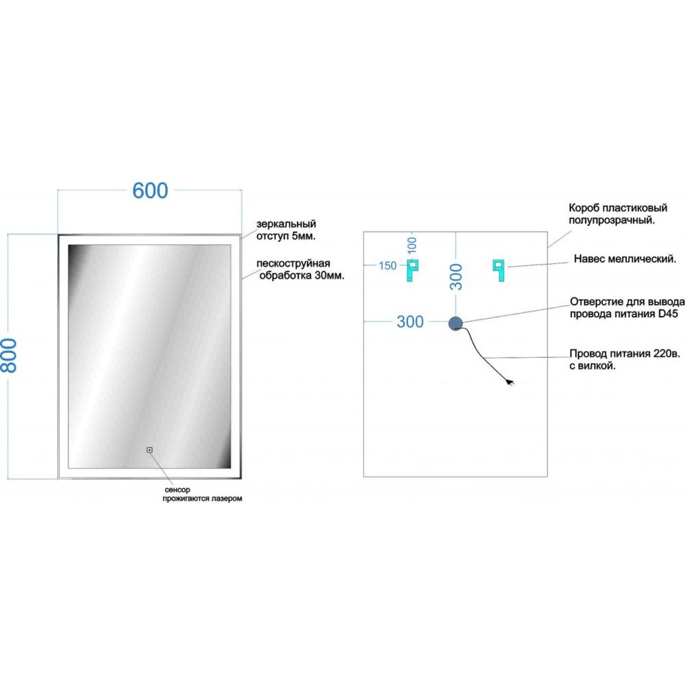 - Инновации: Регулируемая подсветка с сенсорным управлением в зеркале.