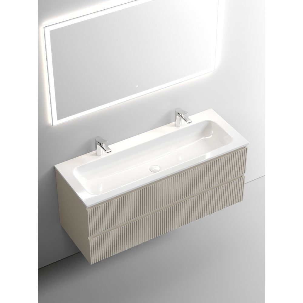 Тумба Sancos Snob T с размерами 119,5x44,5x50 см выполнена из высококачественного МДФ, покрытого пленкой. Подвесная установка и мягкие доводчики ящиков обеспечат комфорт и долговечность. Раковина Ceramicanova Element CN7016 размерами 121x45,7 см из фаянса имеет два отверстия для смесителей, но требует отдельной покупки донного клапана. Изящное зеркало Sancos City CI1200 с габаритами 120x2,5x70 см и регулируемой подсветкой управляется сенсорным выключателем.