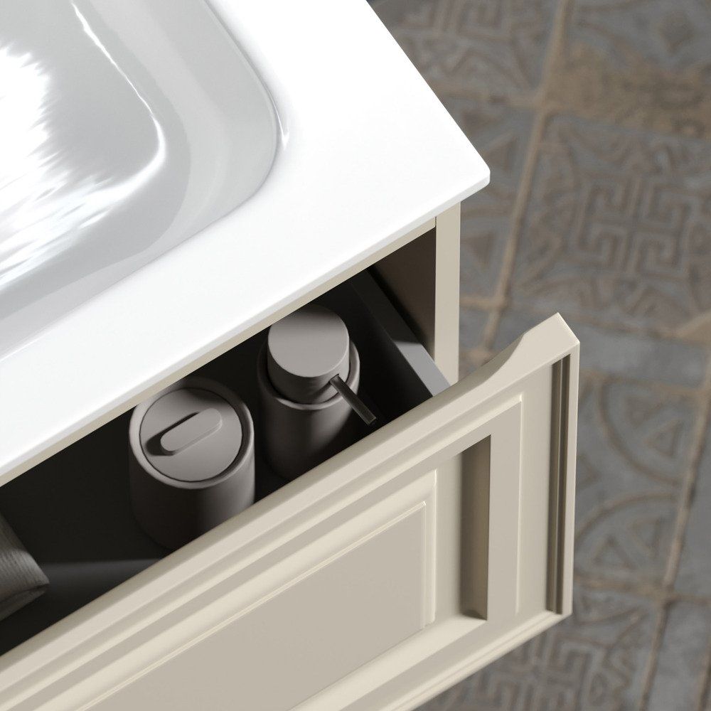 Ваша ванная комната – это уголок уюта и комфорта, и важно, чтобы каждая деталь гармонично вписывалась в ваш интерьер. Мебель для ванной Sancos Very 80 beige soft создана, чтобы удовлетворить самые высокие ожидания. Исключительная элегантность и функциональность делают этот комплект идеальным выбором для современных интерьеров. Благодаря стильному дизайну и продуманной конструкции, эта мебель не только украсит вашу ванную комнату, но и сделает её использование максимально удобным.