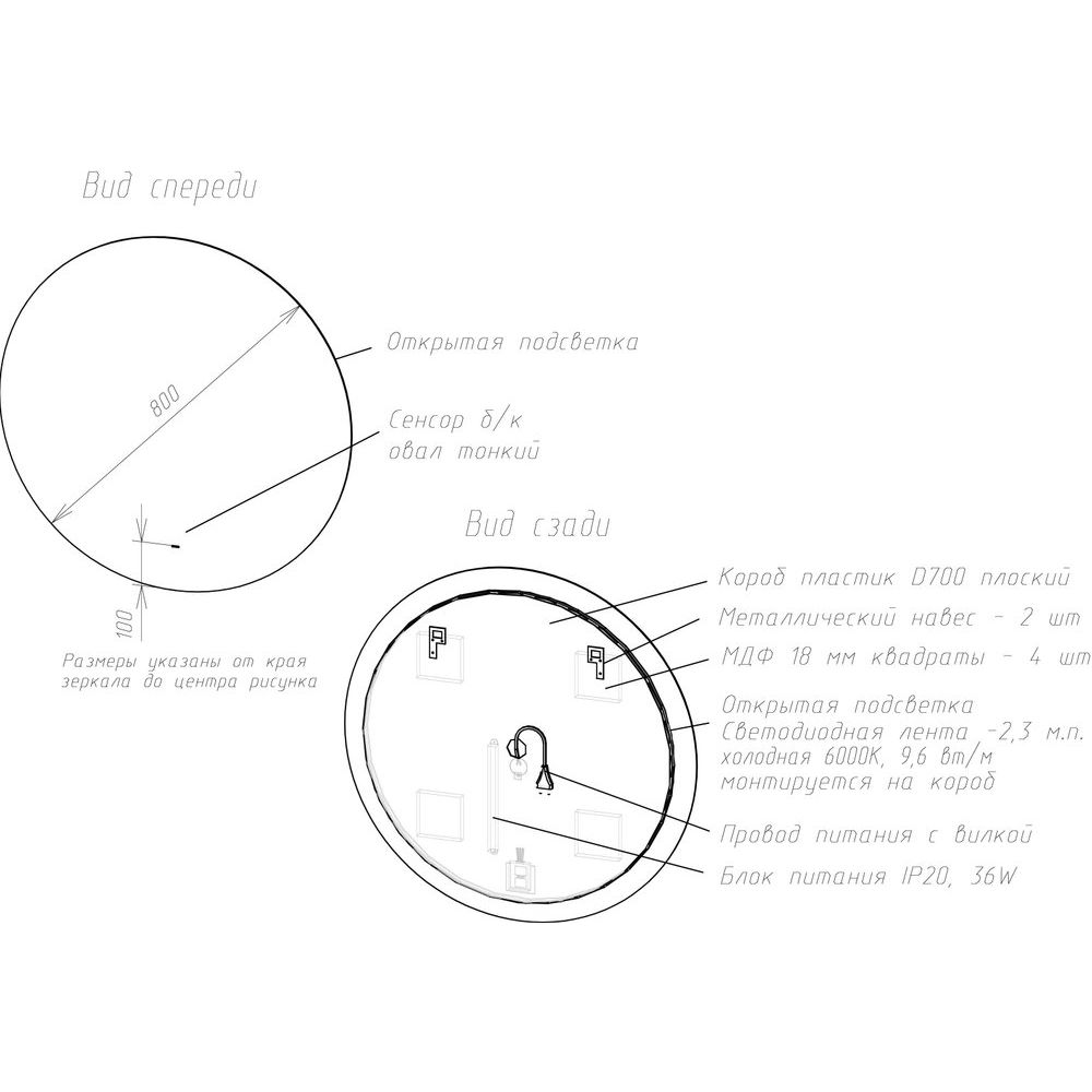 Зеркало Sancos Sfera 80, украшенное регулируемой подсветкой за полотном и сенсорным выключателем, имеет размеры 80x2x80 см. Материал корпуса — пластик. Гарантия на зеркало 2 года, производство Россия.